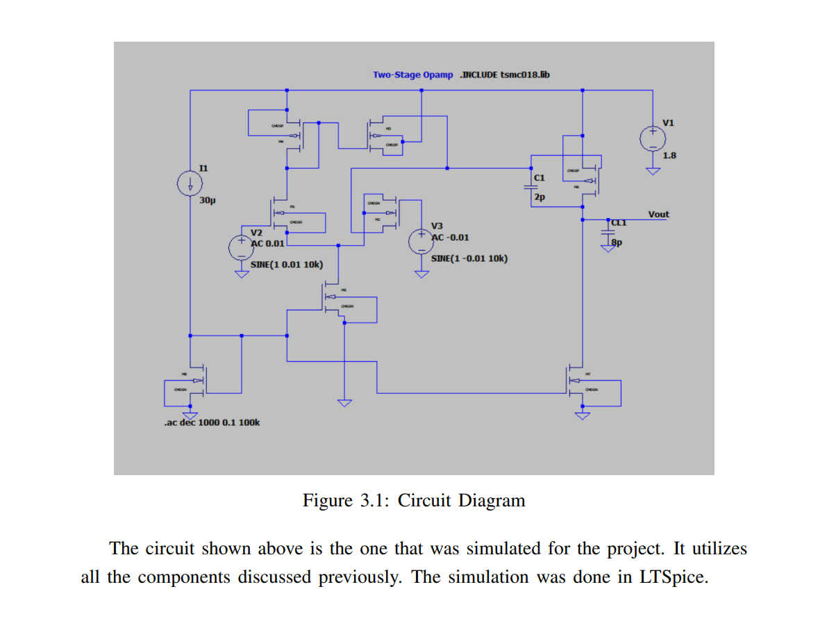 Operational amplifiers (op-amps) are fundamental building blocks in the field of electronics, particularly in analog circuit design. They are versatile and can be configured in many different ways to perform a variety of functions. This report focuses on a specific configuration of op-amps known as the two-stage op-amp using a differential amplifier.